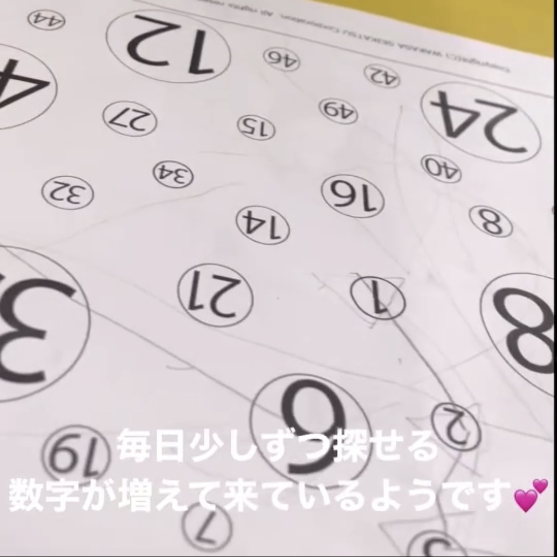 毎日しているので、少しずつ探せる数字も多くなっているようです💕