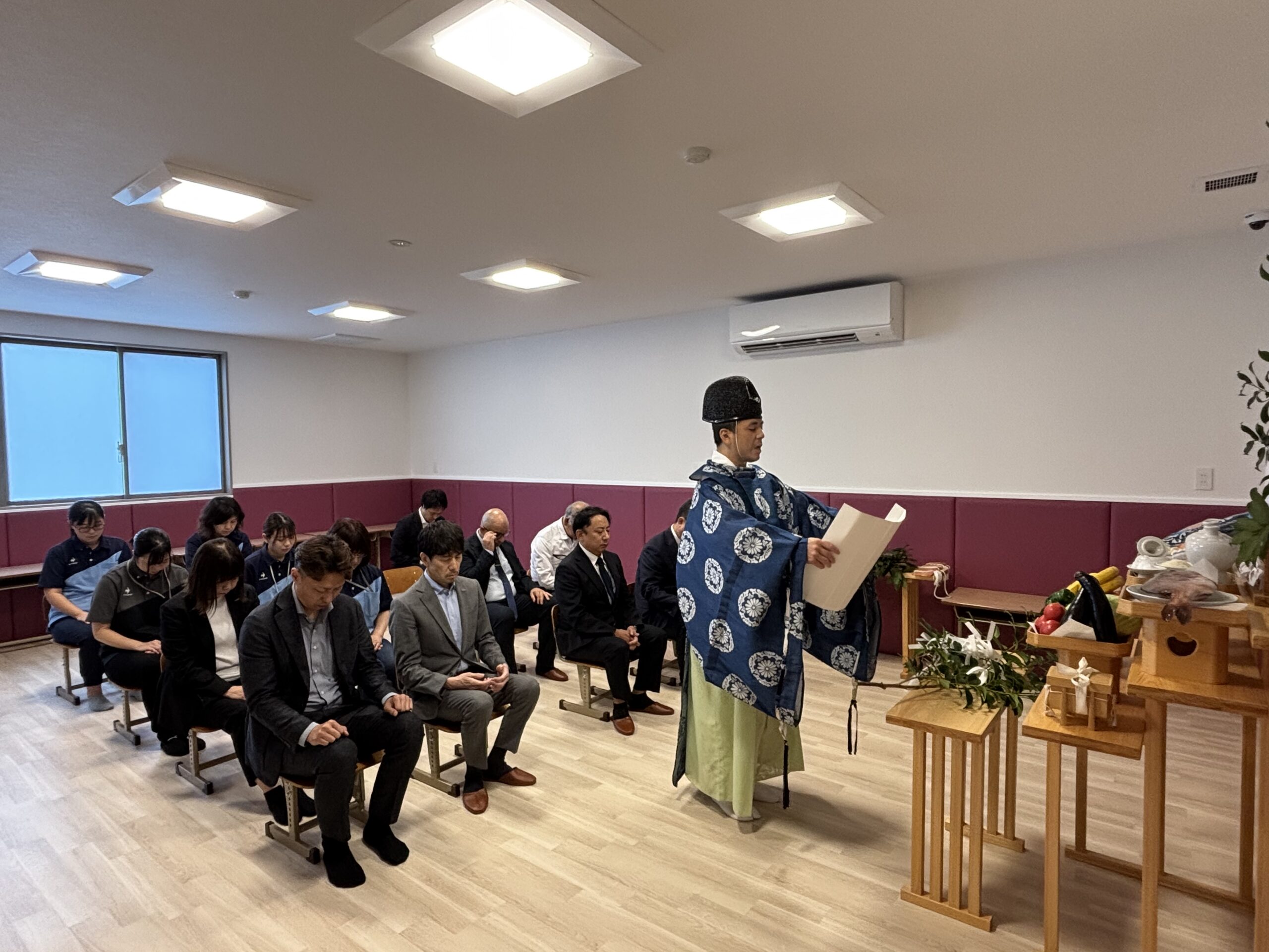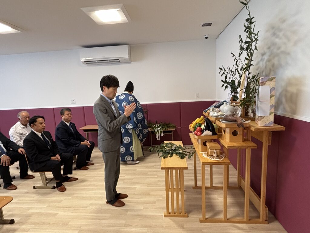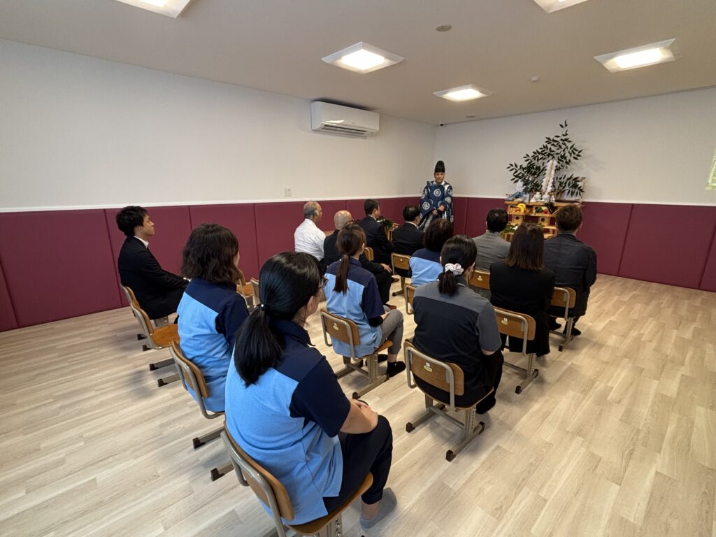 お知らせ スマイルパレット滝尾 開所式 令和7年9月26日 2025.09.26 本日、スマイルパレット滝尾の開所式を執り行いました。 式典では、若宮八幡宮の神主様をお招きし、施設の安全と繁栄を祈願する神事が厳かに執り行われました。設計事務所・建設会社の関係者の皆様にもご参列いただき、関係者一同で新たなスタートを祝うひとときとなりました。 これから地域の皆さまに愛される施設となるよう、スタッフ一同心を込めて運営してまいります。 この記事のタイトルとURLをコピーする 夏祭り(大分宗方) 前の記事 9月のフットサル 次の記事